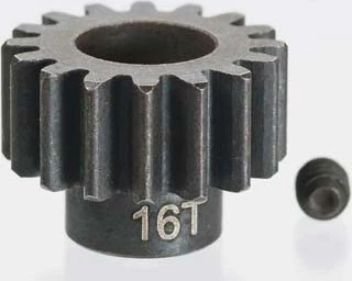 This is the optional 16 Tooth Pinion Gear for the DuraTrax DX450 Motorcycle. FEATURES: Constructed of steel Provides slightly slower acceleration but faster top speed than stock 13 tooth pinion gear INCLUDES: 16 Tooth Pinion Gear with set screw REQUIRES: Attaching to motor shaft jxs 01/25/10 ir/jxs
