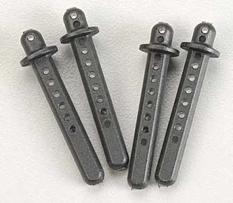 This is the replacement Body Post Set for the Duratrax Mini Quake 4WD. FEATURES: Composite plastic construction, black in color INCLUDES: Four body posts (key number 33, step 14 in the manual) REQUIRES: The posts are secured to the shock tower with body clips SPECS: Length: 1.32" (34mm) Diameter: .18" (4.5mm) kpm11/23/2004 ir/jxs