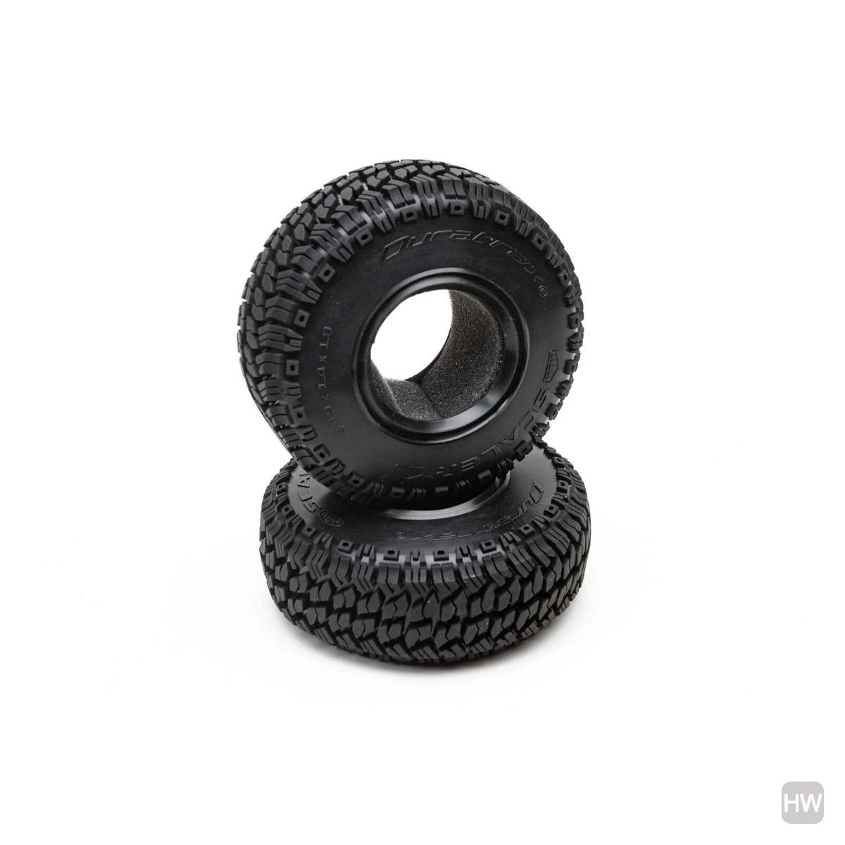 These Duratrax® SCALER front and rear tires are Class 1 (4.19″ outer diameter) size for maximum scale appearance, with a 1.9″ inner tire/outer wheel diameter. Made from super-soft C3 compound rubber with an aggressive tread that bites into loose or muddy surfaces, these tires provide exceptional gripping power for climbing over slippery rocks and getting past the toughest of obstacles. Sold in pairs with foam inserts included.